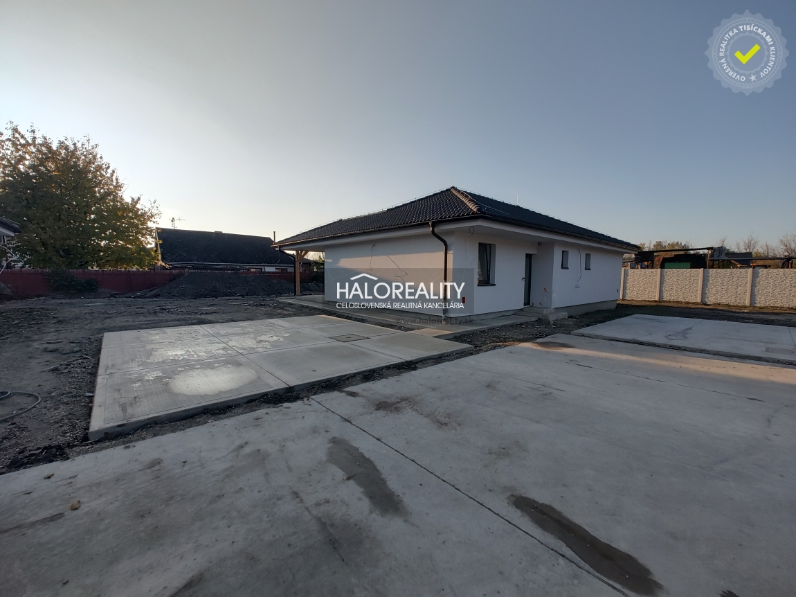Stavba je zhotovená z tehly (300 mm) s polystyrénovým zateplením (180 mm), energetický certifikát triedy A, betónová strešná krytina, väzníkový krov s úložným priestorom, plastové okná s izolačným trojsklom, plastové vstupné dvere, betónový poter, vnútorné omietky, fasádna farba, 12 m3 žumpa so spevneným povrchom a bočné oplotenie. Kúrenie je teplovodné podlahové a príprava TÚV tepelným čerpadlom s nízkymi prevádzkovými nákladmi (cca 50 €/mesiac).