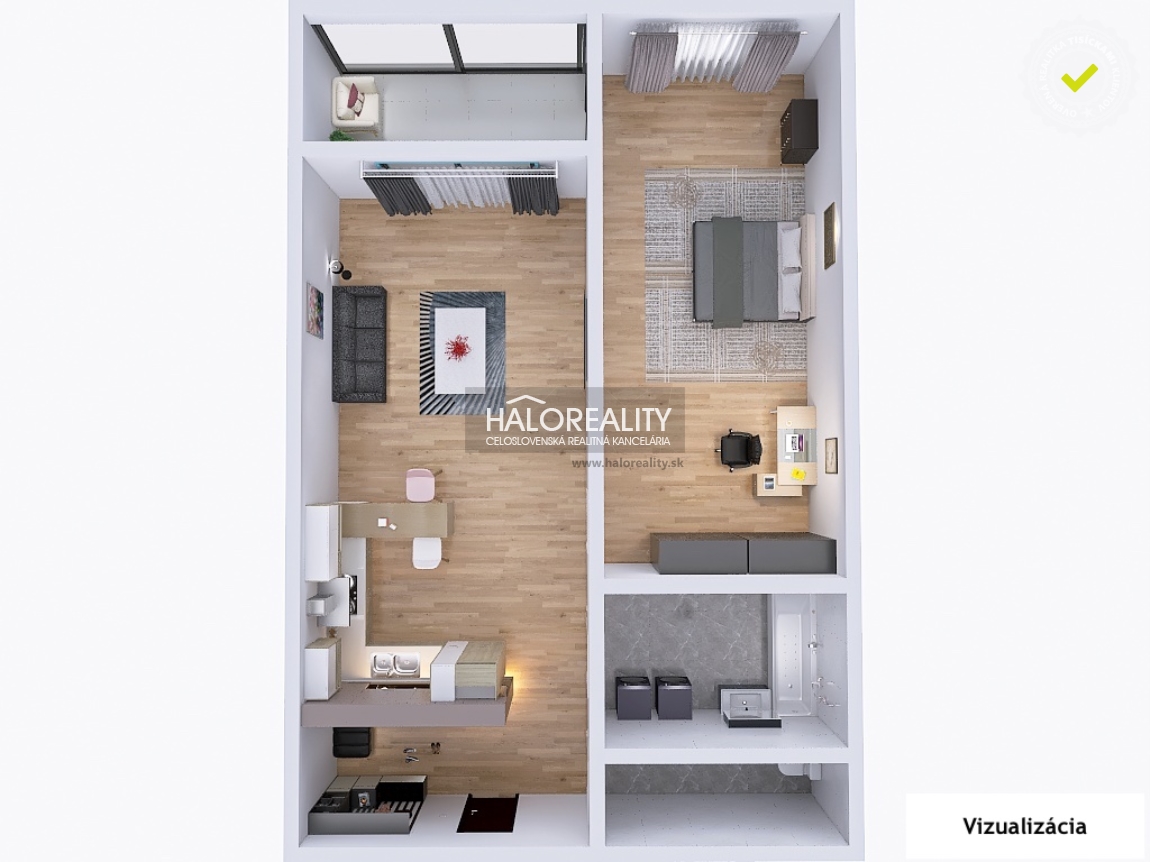 Inzerovaná nehnuteľnosť nie je záväznou ponukou na uzavretie zmluvy. Majiteľ nehnuteľnosti má právo voľby kupúceho/nájomcu podľa vlastného uváženia a svojich podmienok. Uvedená cena nie je záväzná a môže sa meniť od podmienok majiteľa nehnuteľnosti a dohodou s kupujúcim. Uvedené rozmery a plochy sú orientačné a môžu sa mierne líšiť od skutočného stavu. Fotky, videá, 3D prezentácie, pôdorysy a popis nehnuteľnosti sú autorským právom HALO reality, s.r.o. a nie je povolené ich kopírovať a to za žiadnych okolností.