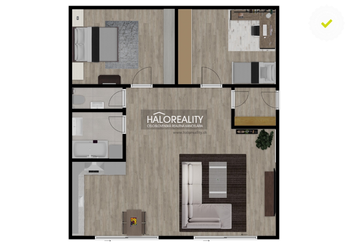 Inzerovaná nehnuteľnosť nie je záväznou ponukou na uzavretie zmluvy. Majiteľ nehnuteľnosti má právo voľby kupúceho/nájomcu podľa vlastného uváženia a svojich podmienok. Uvedená cena nie je záväzná a môže sa meniť od podmienok majiteľa nehnuteľnosti a dohodou s kupujúcim. Uvedené rozmery a plochy sú orientačné a môžu sa mierne líšiť od skutočného stavu. Fotky, videá, 3D prezentácie, pôdorysy a popis nehnuteľnosti sú autorským právom HALO reality, s.r.o. a nie je povolené ich kopírovať a to za žiadnych okolností.
