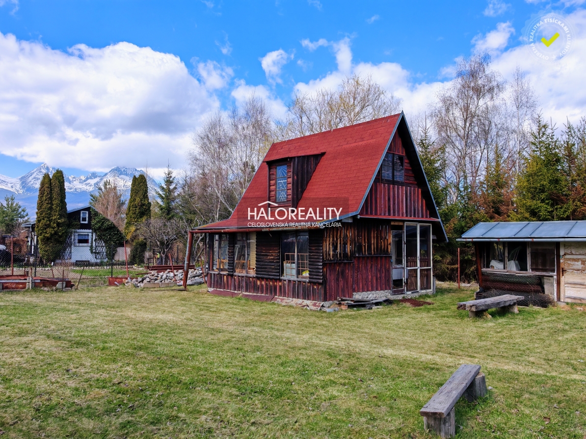 Ponúkame exkluzívne na predaj murovanú záhradnú chatku s veľkým pozemkom a výhľadom na Vysoké Tatry.